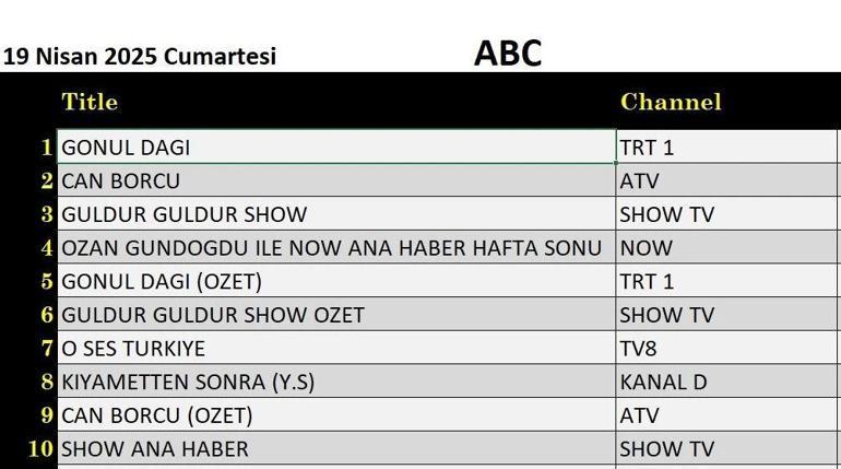 Değerlendirmenin sonuçları, halkın merakıdır. 19 Nisan Cumartesi değerlendirilmesinin sonuçlarının duyurulmasıyla yapım, dizi ve en çok görüntülenen film biliniyordu. Dün gece, Gönül'in dağ ekranları çıkış yapabilir, Gürür Gülür veya Ses Türkiye, üretimlerin değerlendirilmesinin sonuçları soruşturma altında. İşte 19 Nisan Cumartesi günü değerlendirme sonuçları …