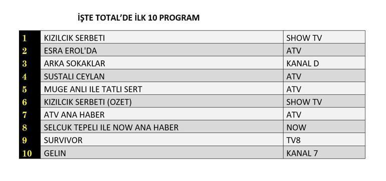 Dünün değerlendirmesinin sonuçları merak ediyor. Bu veriler, televizyon dünyasındaki hangi programların daha fazla dikkat çektiğini, halkın tercihlerini ve eğilimlerini anlamamızı sağlıyor. Değerlendirmenin sonuçları yapımcıların ve televizyon kanallarının içerik stratejilerini modellemektir, aynı zamanda halka açık televizyon tercihlerinin bir göstergesidir.