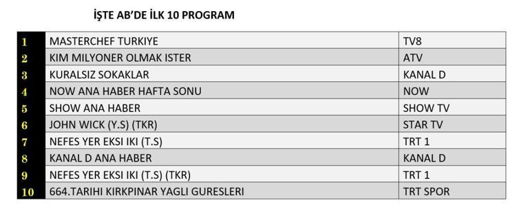REYTİNG SONUÇLARI 6 TEMMUZ 2025